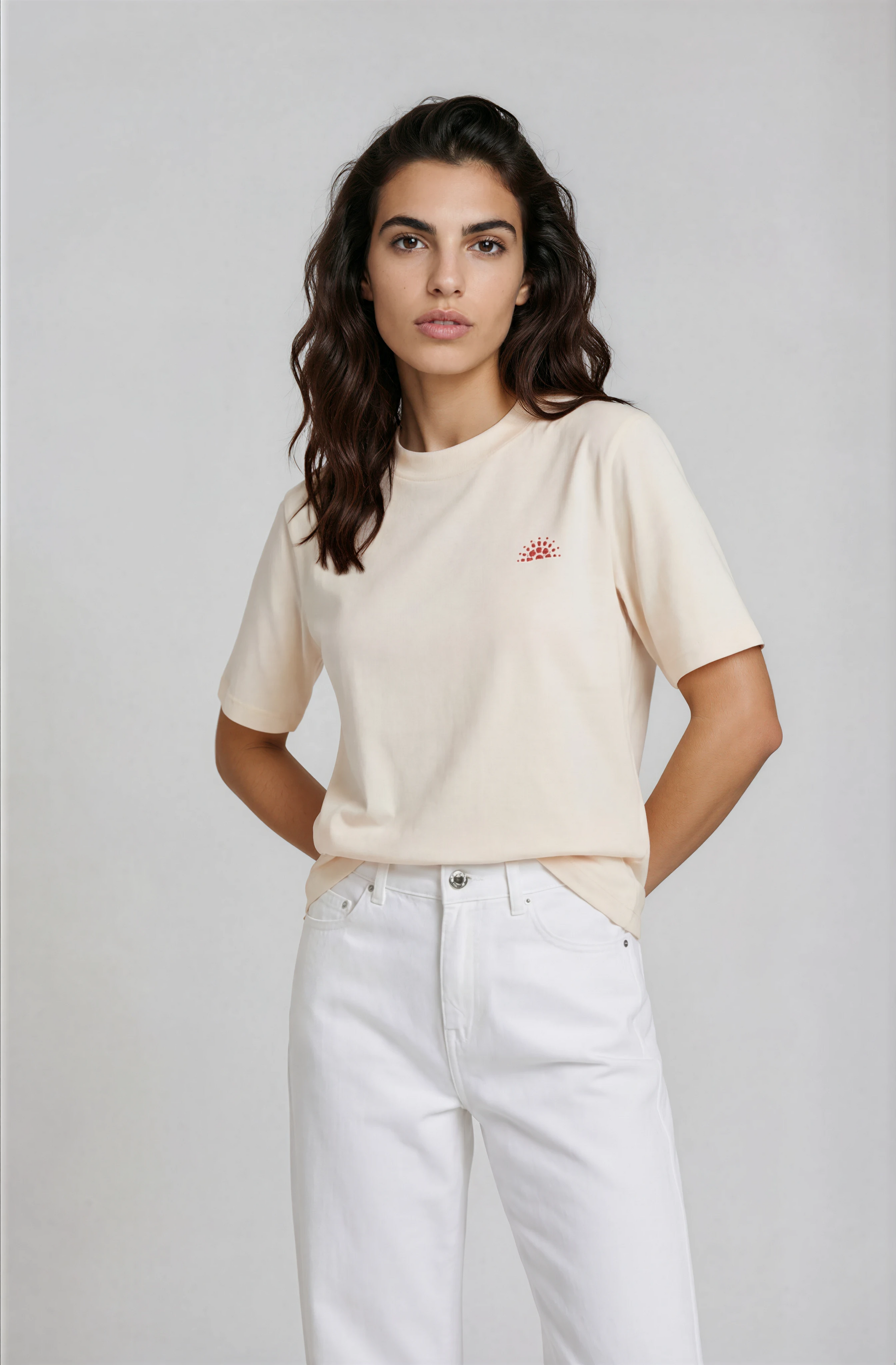 Cream oversized t-shirt with relaxed fit